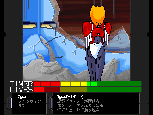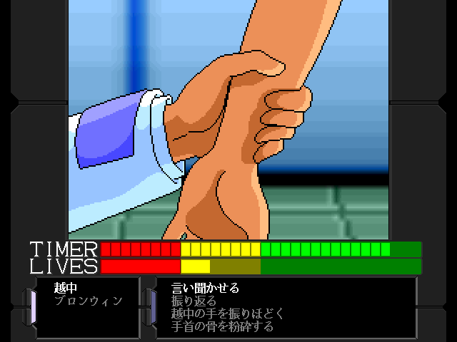 越中 言い聞かせる ブロンウィン 振り返る ブロンウィン 越中の手を振りほどく |