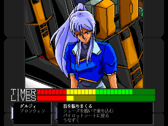 ダルジィ パイロットシートに座る ブロンウィン うなずく |