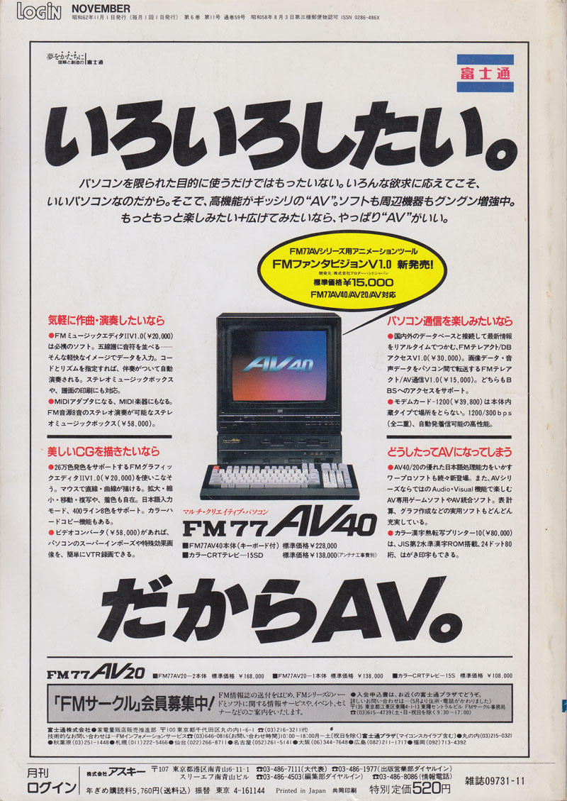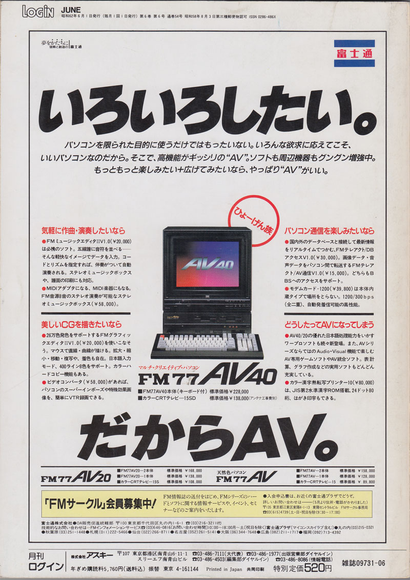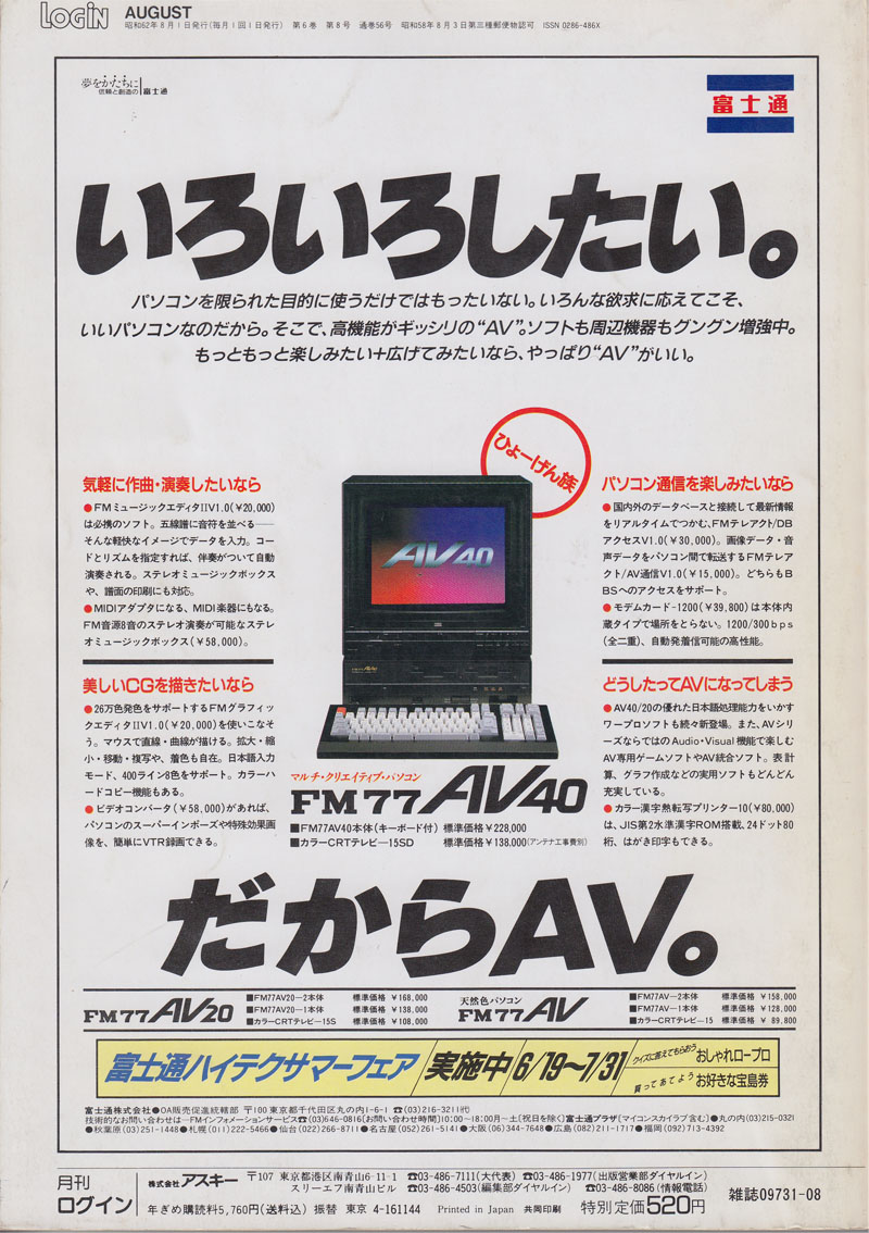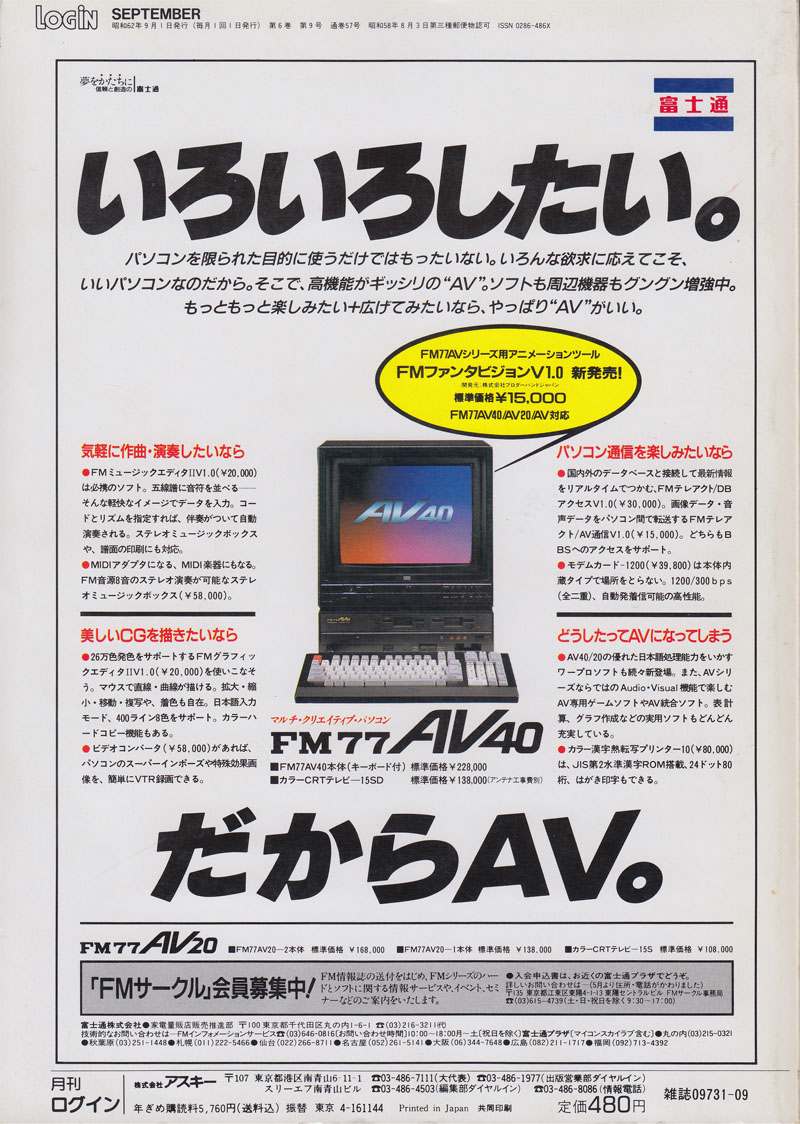 | P.382 | FM77AV | RISE | HummingBirdSoft | ディスクログインFM77AV(4,800円) | |