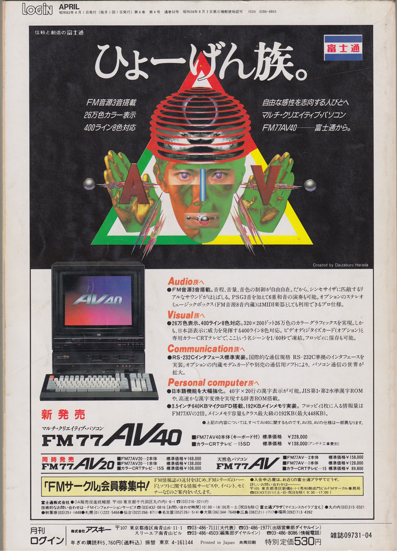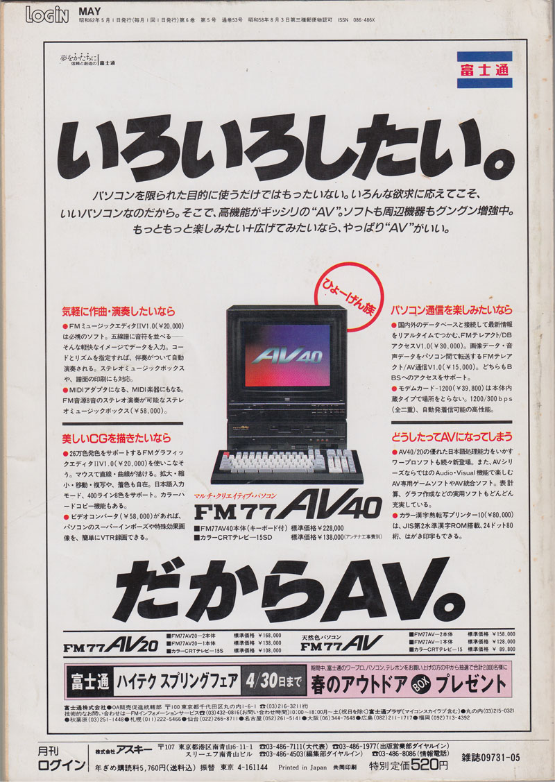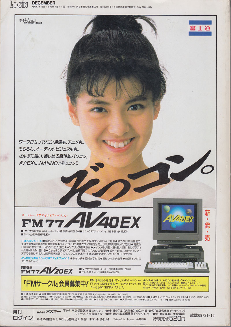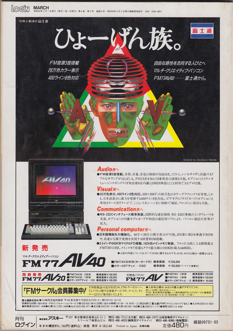 | P.382 | FM77AV | RISE | HummingBirdSoft | ディスクログインFM77AV(4,800円) | |